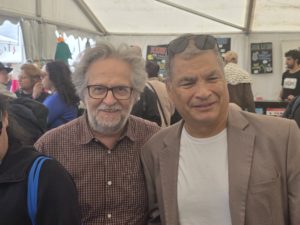 Pour la quatrième année consécutive, ¿Dónde Están? était présent, avec France Amérique Latine et le CRID, les 12, 13 et 14 septembre 2025 dans le Village du Monde de la Fête de l’Huma, La Base 217 à Brétigny sur Orge (91) . Ce fut l’occasion de plusieurs débats politiques, sur le Plan Condor, la situation actuelle en Palestine vue depuis l’Amérique Latine, sur les disparus en Colombie… et aussi de rencontres festives musicales et de dégustations de spécialités latinoaméricaines . Les spécialités culinaires de La Parrilla -choripanes, sandwichs de faux filet ou végétariens, assiettes d’entrecôte grillée- et leur sauce chimichurri ont connu un grand succès, grâce au travail acharné des militants présents. L’ancien président d’Equateur Rafael Correa a partagé plusieurs moments festifs dans le stand FAL-Donde Estan. Le député du parti communiste israélien Ofer Cassif a participé au débat sur la Palestine et l’Amérique Latine.