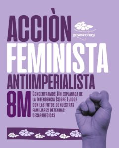 La marche féministe a défilé en silence devant le collectif Madres y Familiares, présent en bordure, représenté par des femmes portant les portraits des détenues disparues. Madres y Familiares a publié à cette occasion un communiqué, accessible ici.